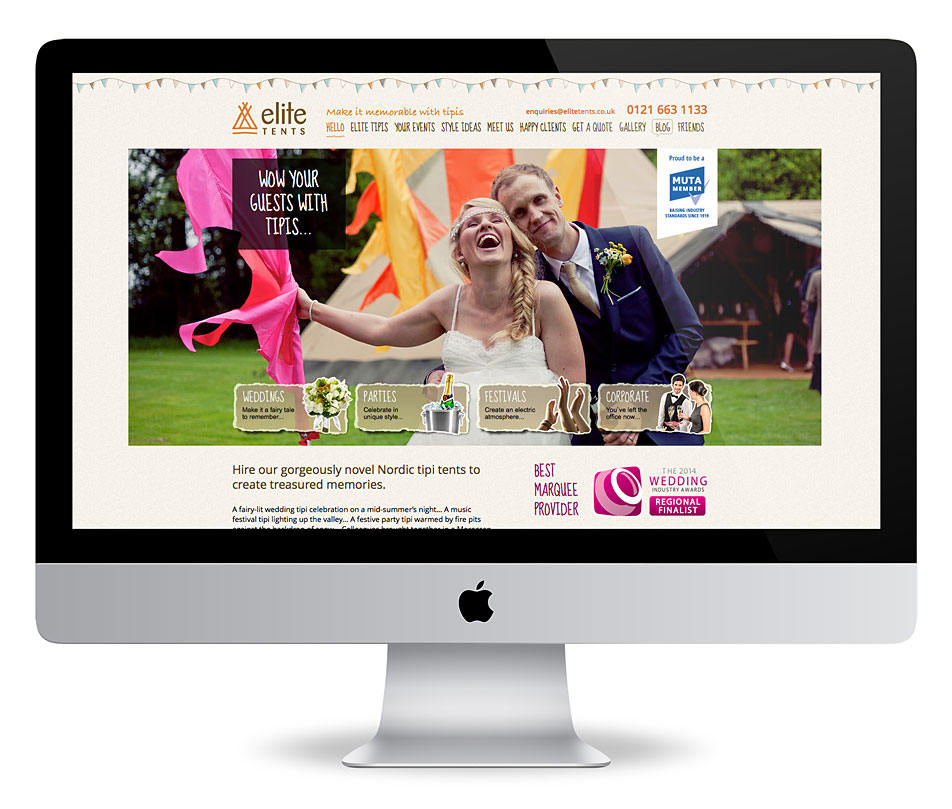 Following the success of our Stunning Tents website, Wylde were approached in 2010 by start-up business, 'Elite Tents', to brand their new venture.